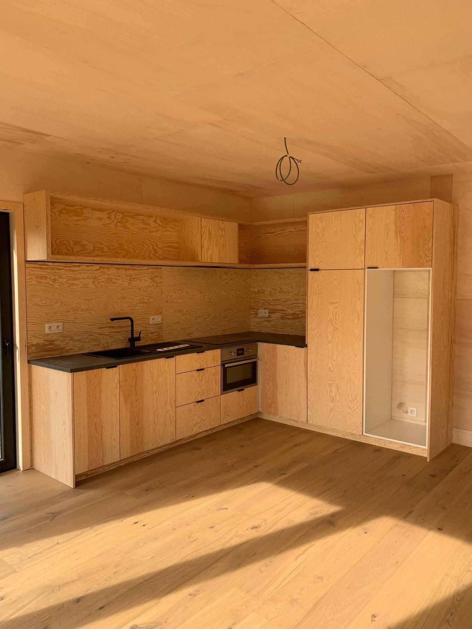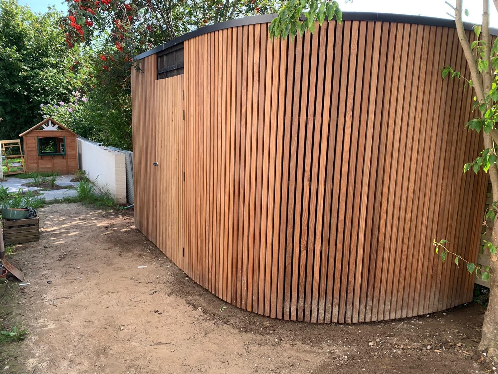 De buitenkant wordt bekleed met Ayous thermowood.